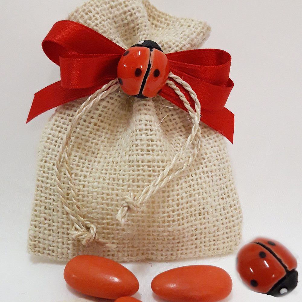BOMBONIERA SACCHETTINO IN COTONE ROSSO A POIS | COD L06