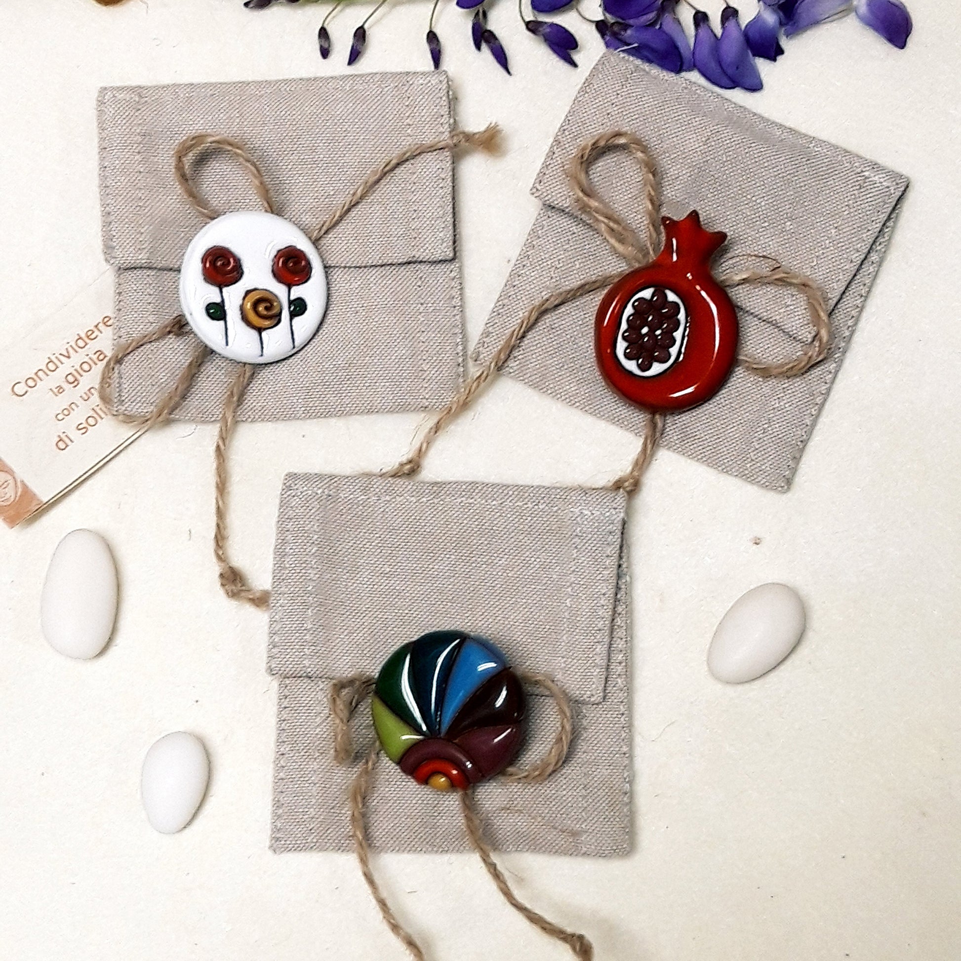 Bomboniera con SPILLA in ceramica smaltata in tre diverse decorazioni: