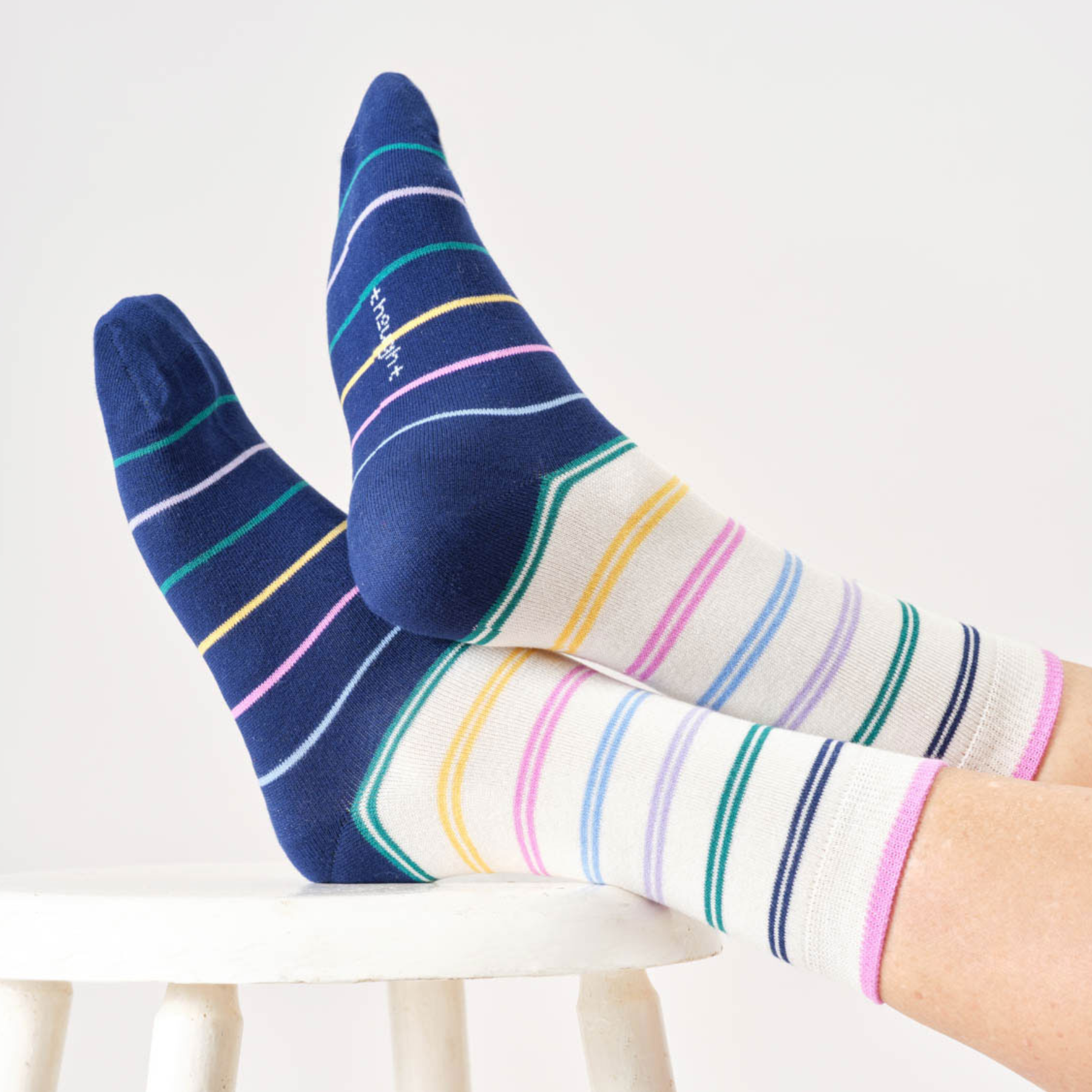 Calzini donna "Colour Block Stone White" cotone bio e bambù Thougth