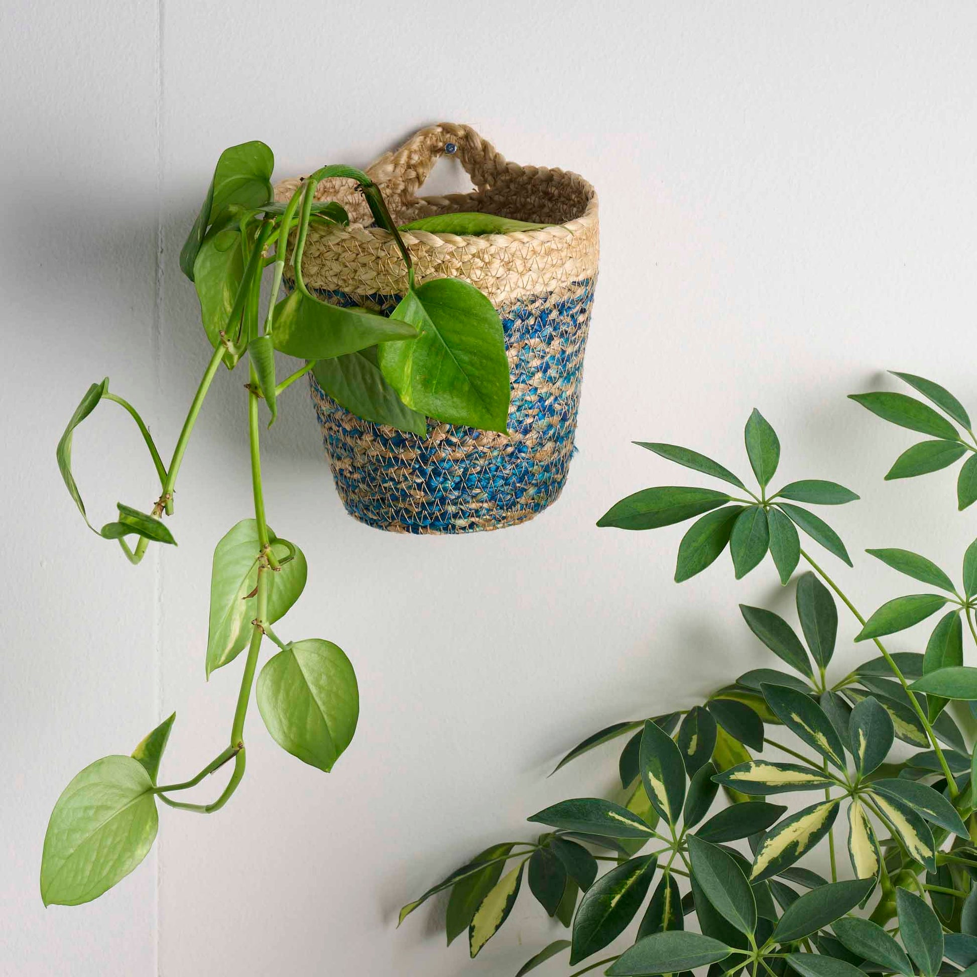 Cesto appendibile blu in juta