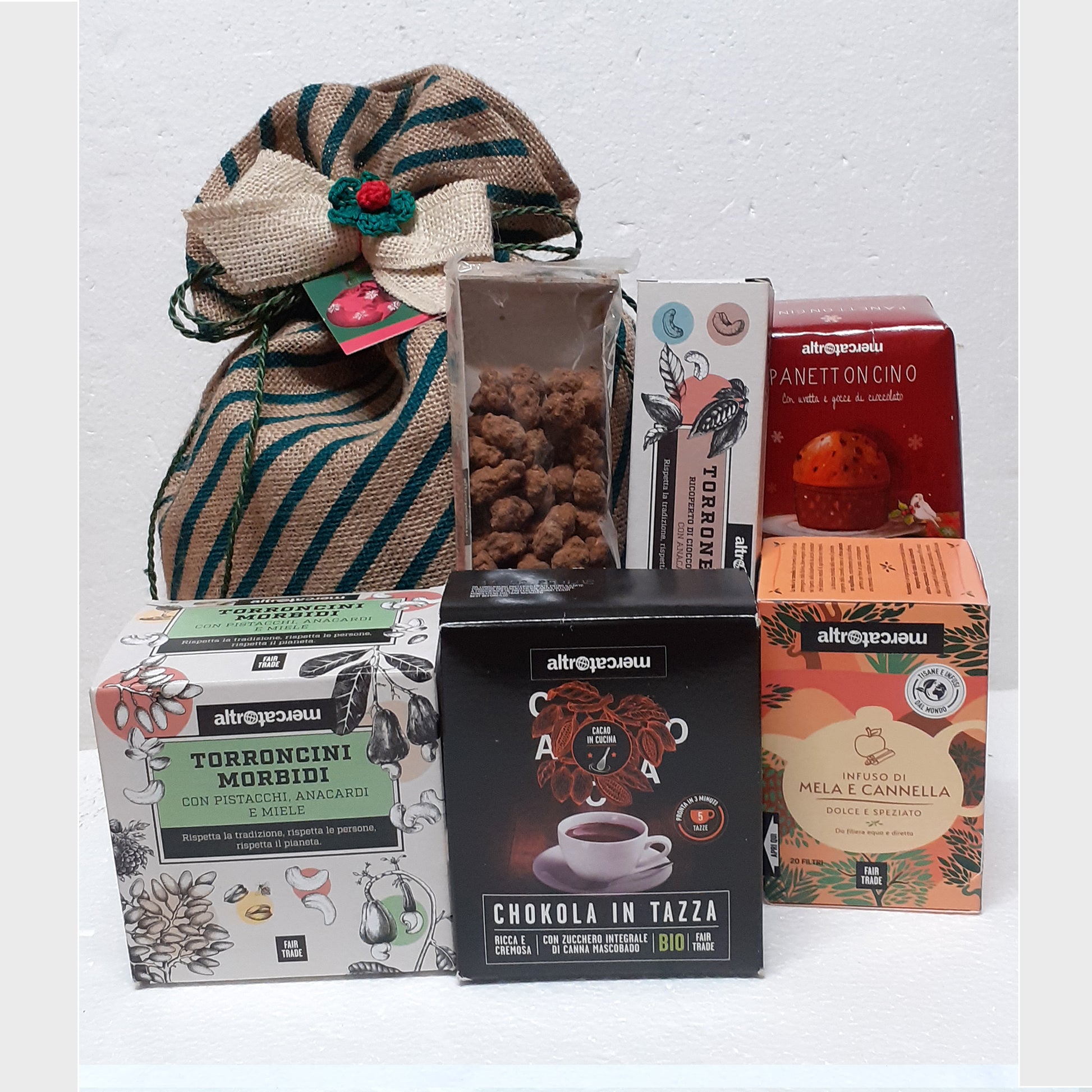 Cesto natalizio solidale "La gioia del Natale" racchiude la magia delle feste: una selezione di prodotti equosolidali che portano sapore, tradizione e solidarietà alla tua tavola.