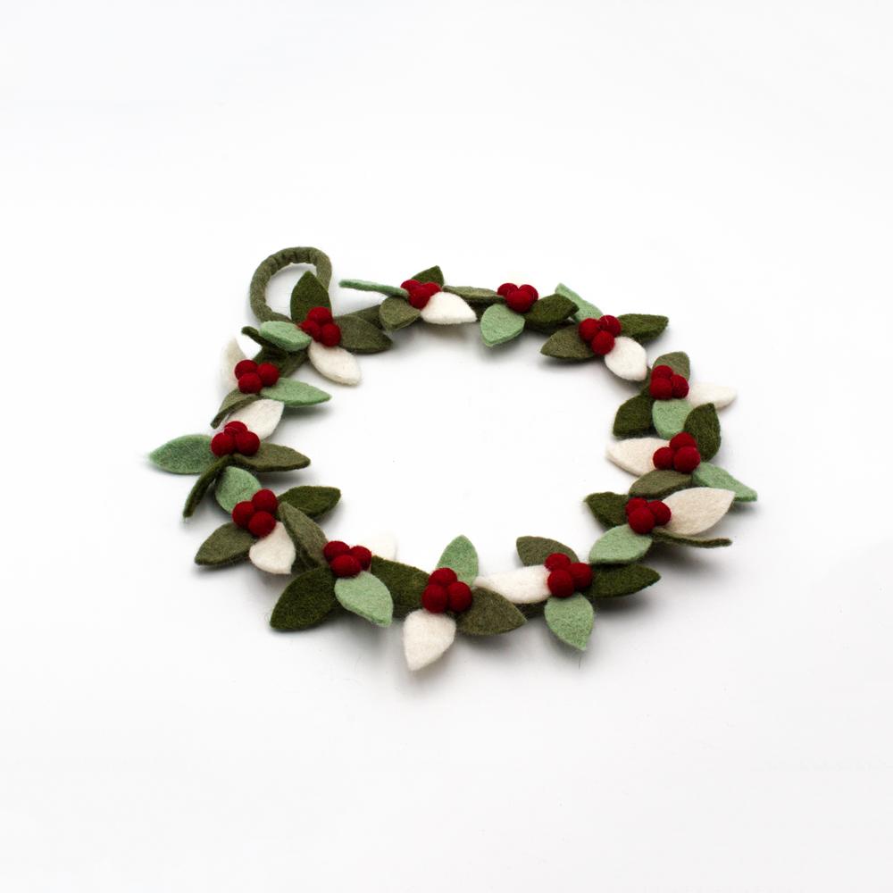 Corona di Natale bacche decorative in feltro artigianato equosolidale Nepal | Hatale