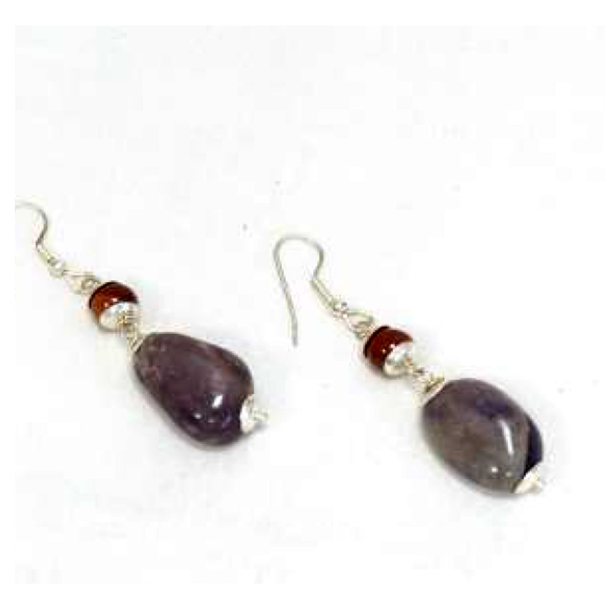 Orecchini Uma – ottone placcato argento + ametista e corniola (equosolidale, Asha India)