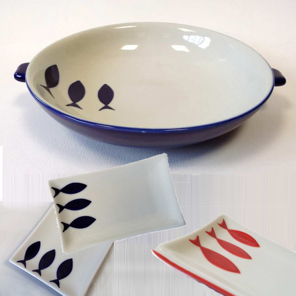 Uno stile con grafica stilizzata e moderna. In ceramica smaltata e decorata a mano.
