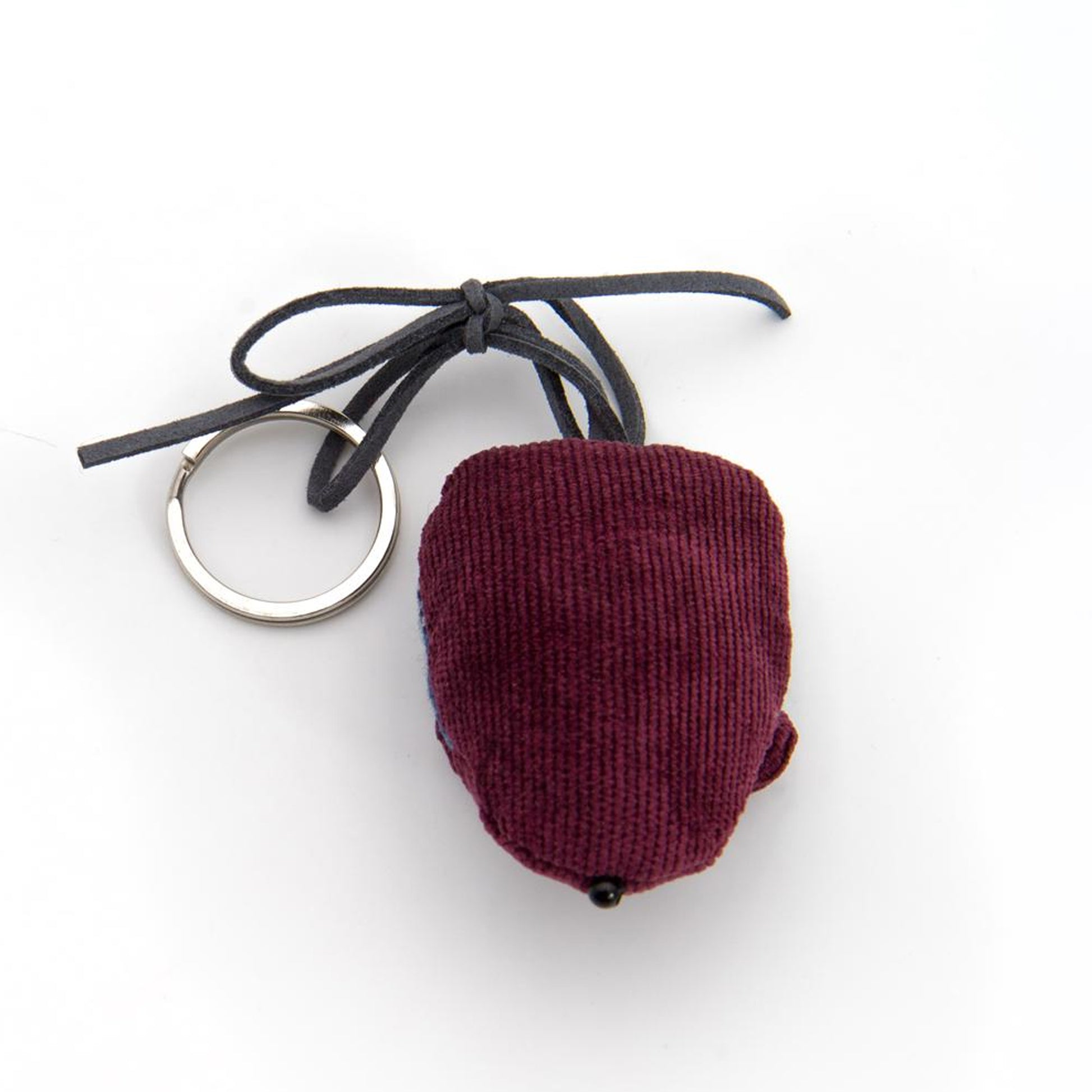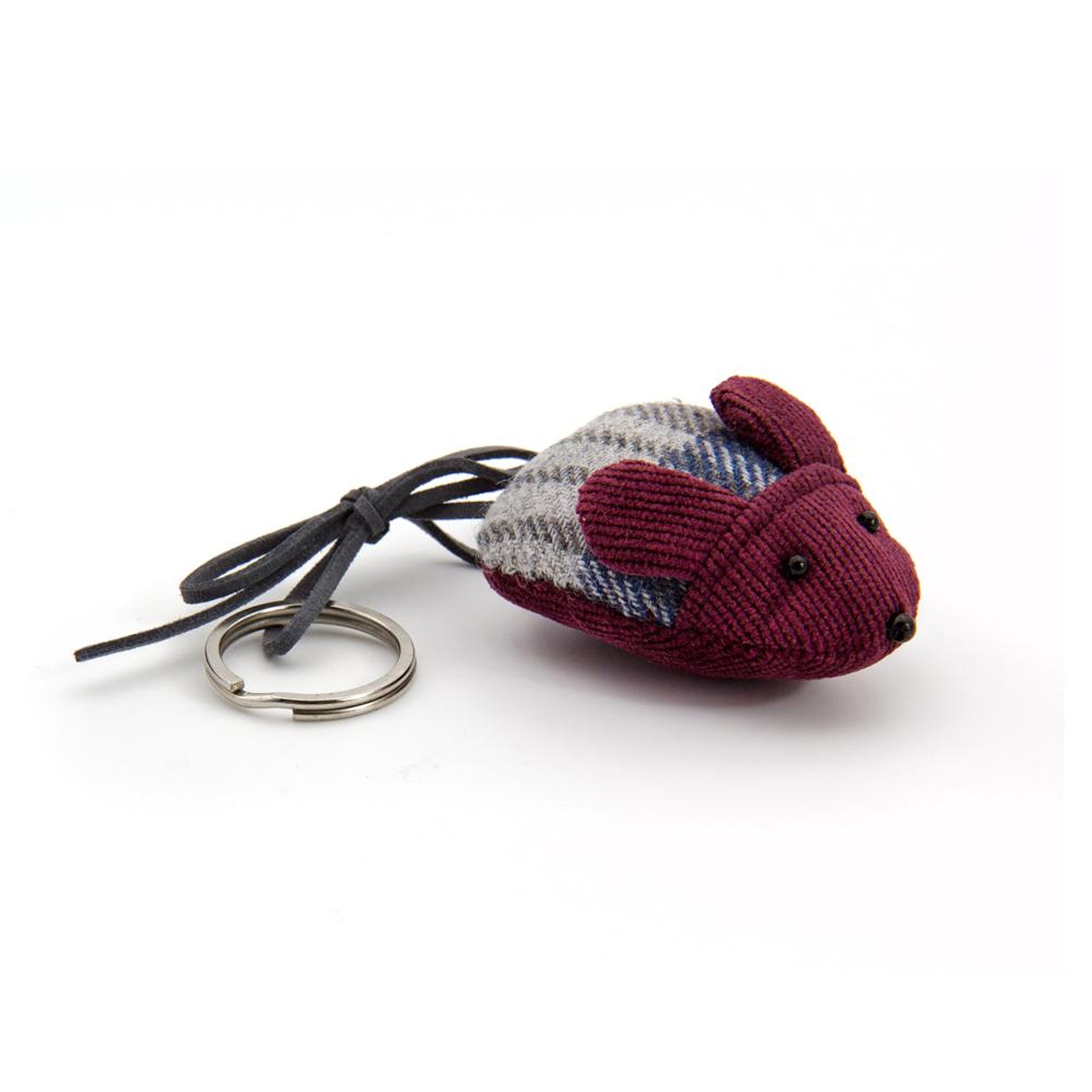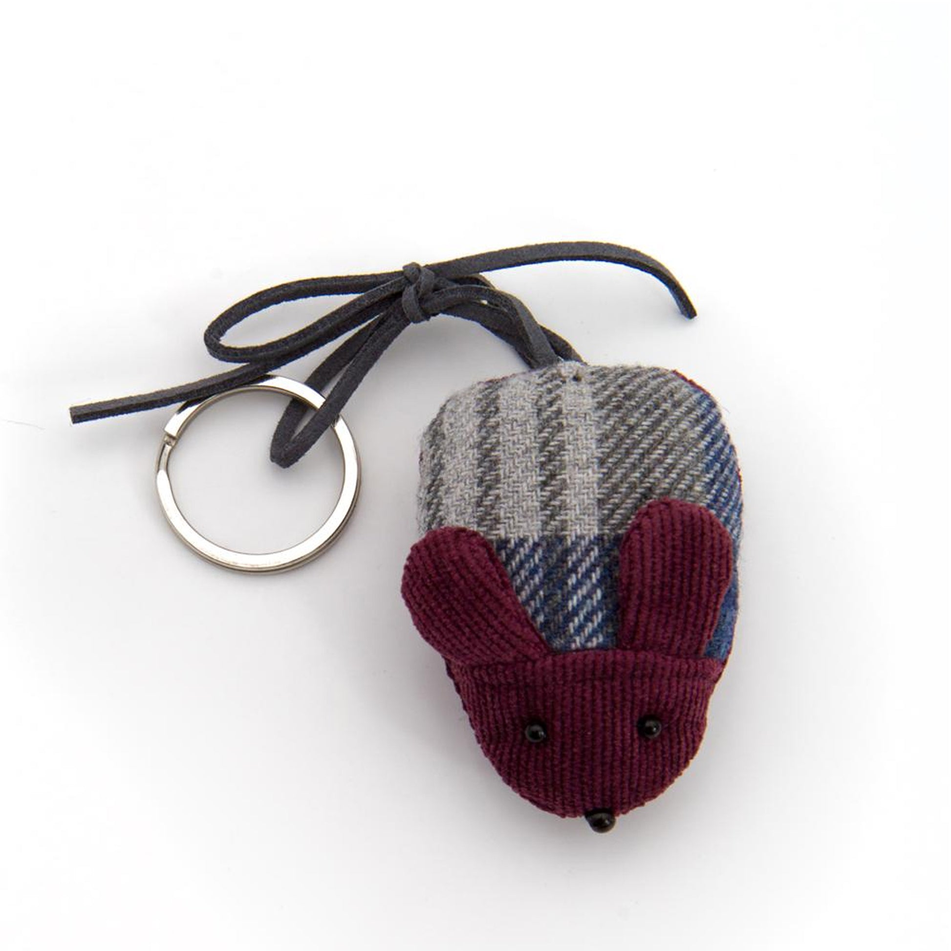 Portachiavi in tweed e velluto a coste bordeaux a forma di topo.