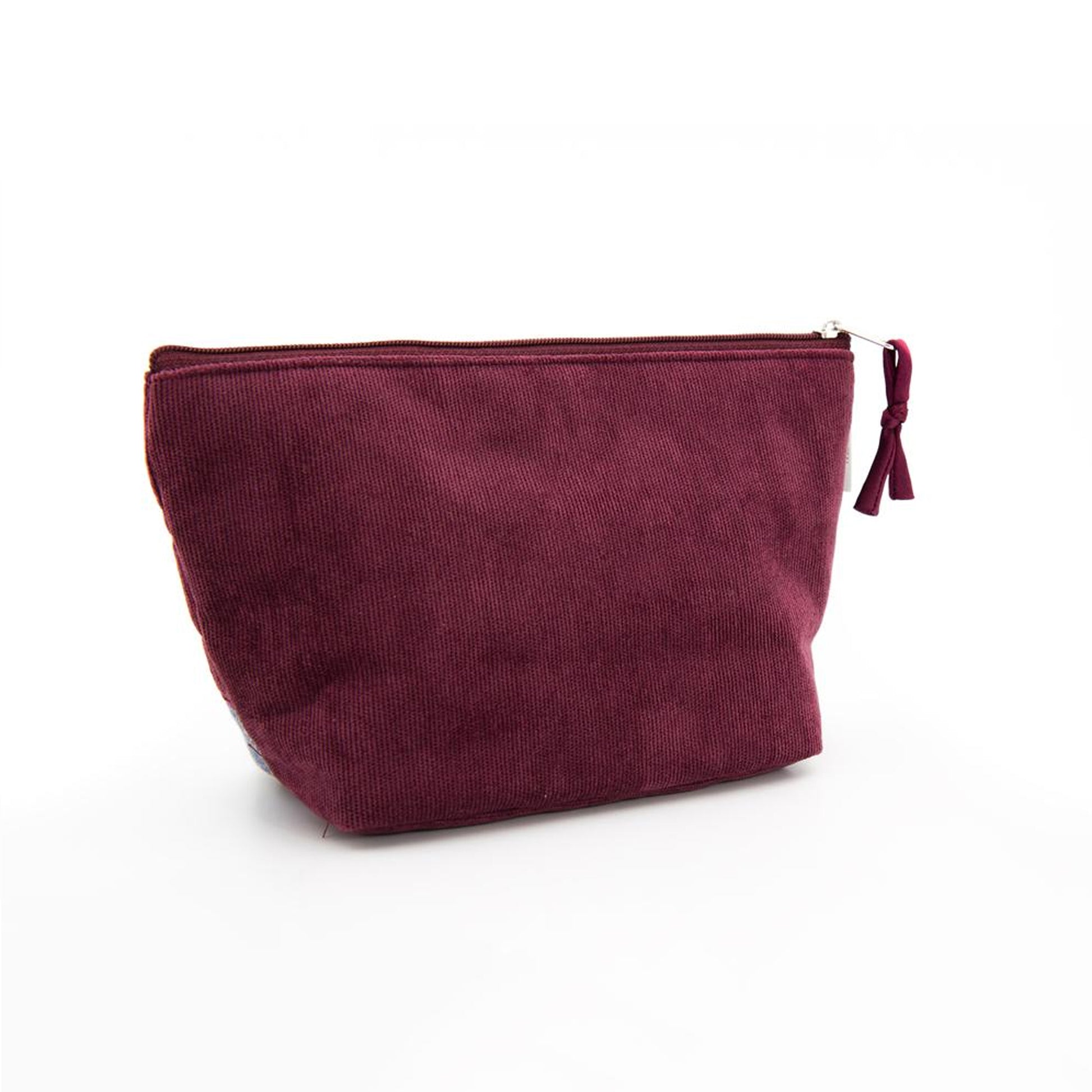 Portatrucco medio in tweed e velluto a coste bordeaux.
