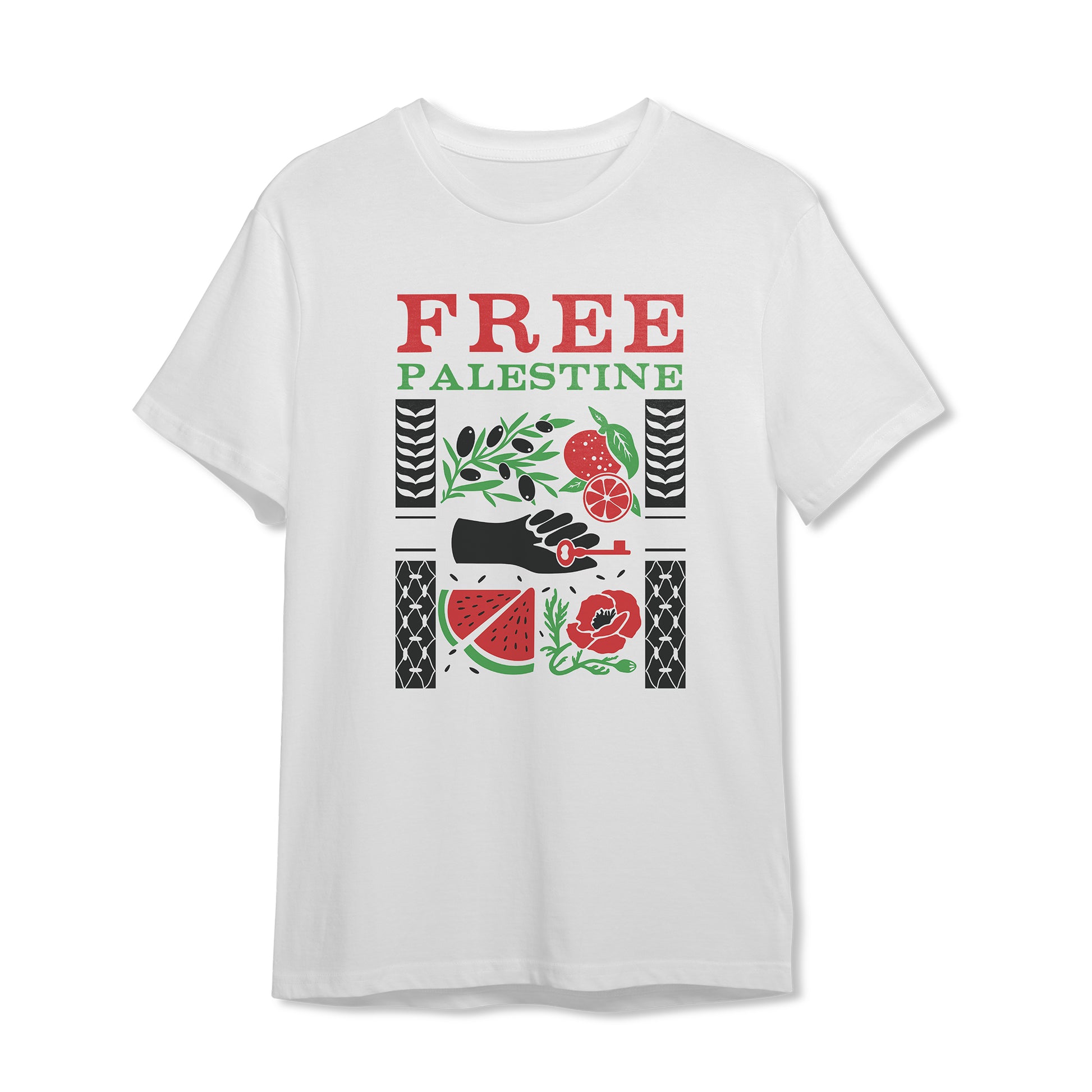 Con l’acquisto della t-shirt Free Palestine contribuisci con 5€ alla raccolta fondi Altromercato a sostegno dei produttori palestinesi di CommercioEquo Solidale. (PARC e AOWA).