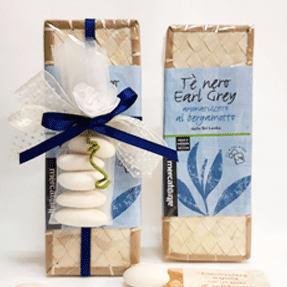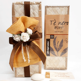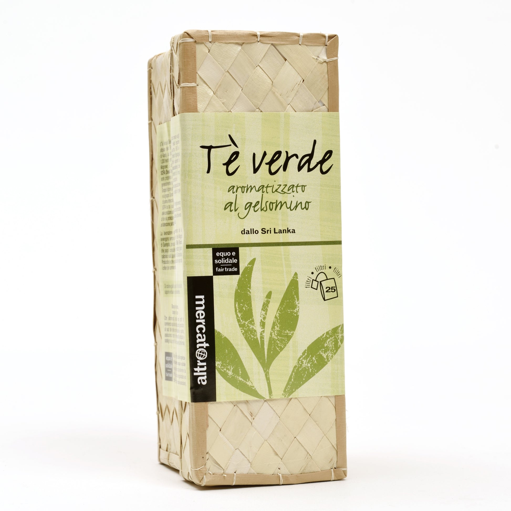 Tè verde, qualità GBOPF (Green Broken Orange Pekoe Fannings) aromatizzato al gelsomino. 25 filtri confezionati in cestino artigianale.